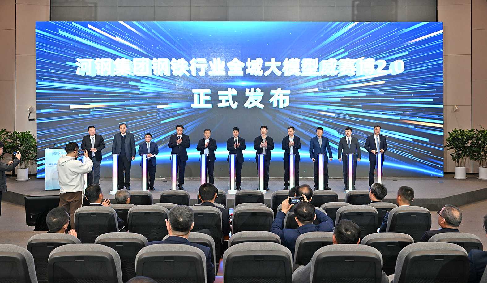 The launch event was attended by distinguished guests including Tang Zujun, Standing Committee Member of the Party Committee and Vice President of the China Iron and Steel Association; Song Xiangdang, Deputy Director-General Level Official of the Provincial Department of Industry and Information Technology; Wei Xiaojie, First-Level Inspector of the Provincial State-owned Assets Supervision and Administration Commission; Liu Haofeng, Vice Mayor of Tangshan City; Meng Gang, Member of the Party Committee and Vice President of the Hebei Branch of China Development Bank; Su Tao, Member of the Party Committee and Vice President of the Hebei Branch of Bank of China; Guo Pengjun, Member of the Party Committee and Vice President of the Hebei Branch of China Construction Bank; Yang Di, Member of the Party Committee and Secretary of the Discipline Inspection Commission of the Shijiazhuang Branch of China Everbright Bank; Lu Jianhui, Vice President of China Mobile Hebei Company; Cui Enliang, General Manager of the Hebei Branch of ZTE Corporation; and Yang Jie, Deputy Secretary of the Laoting County Committee, County Chief, and Deputy Secretary of the Party Working Committee & Director of the Management Committee of Haigang Economic Development Zone. The event was chaired by Lin Zhangguo, Deputy General Manager of the HBIS Group, who also presented the official news release on the HBIS WeShyper Large Model 2.0.